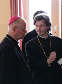 А современные экуменисты не видят ничего плохого в общении с еретиками. Как сообщает сайт «Антимодернизм», Русскую православную семинарию во Франции посетил местный католический прелат Мишель Дюбост (Michel Dubost). В библиотеке Дюбост встретился с семинаристами и руководством семинарии.