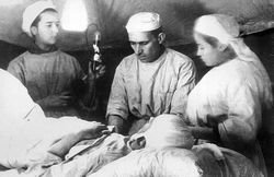 Тяжелой и временами смертельно опасной являлась работа фельдшеров, медсестер и сандружинниц, выносивших раненых с поля боя. Зачастую она происходила под огнем противника: