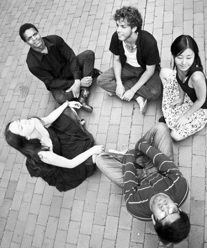 на фото: Алиса Апрелева — американский период творчества, вместе с ней в группе «Lucidus» участвовали: Дин Каппер (виолончель, США), Халлей Фистер (виолончель, США), Андрес Марин (барабаны и перкуссия, Коста Рика), Дипак Гопинат (барабаны, Индия), Марте Роэль (звукорежиссёр, Мексика)