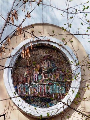 Девять из этих церквей – домовые при приютах, богадельнях, училищах, попечительстве о бедных и других богоугодных учреждениях. Остальные двенадцать изображены на фасадах. Автор этих замечательных мозаик — художник М.М. Дубцов, который известен москвичам благодаря панно «Немецкая слобода в XVII веке» на фасаде жилого дома у станции метро «Бауманская» и панно в центре техобслуживания завода АЗЛК в Кузьминках. Жители Москвы должны сказать спасибо Михаилу Матвеевичу за то, что он сохранил память о разрушенных замоскворецких церквях.
