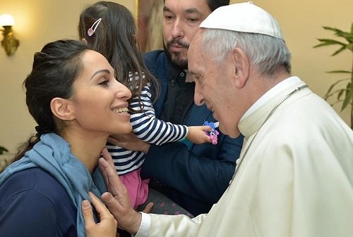 Светлана Касьян с римским папой Франциском и со своим мужем - Леонидом Севастьяновым, помощником митрополита Илариона (Алфеева),