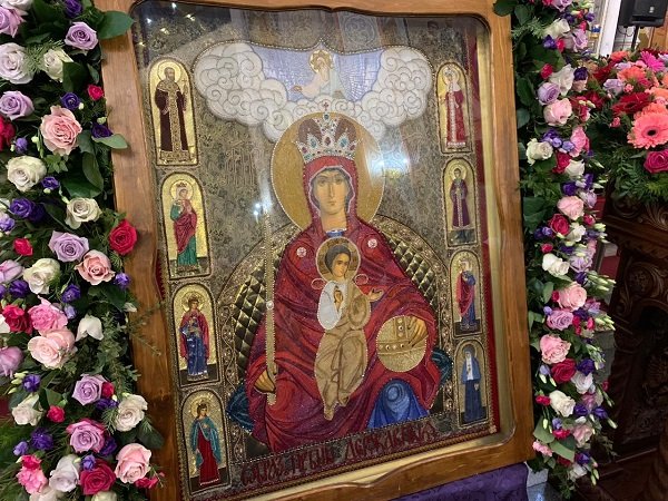 На аналое посреди храма ныне: Крест и Державная икона Царицы Небесной Земли Русской…