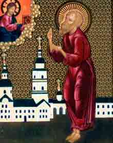 Воздержание в пище его было удивительным. Он не только не употреблял в пищу мяса, не пил вина, но удерживался и во всякой пище и питии, так что тело его было сухим и легким. Приходя домой, он стучал по столу и говорил: "Мама". Так он просил его покормить, даже когда был взрослым и жил у сестры. Иногда в горшочке для него разваривали сухую ягоду, которую он очень любил. Еще нравилось ему пить чай с черным хлебом, помазанным медом.