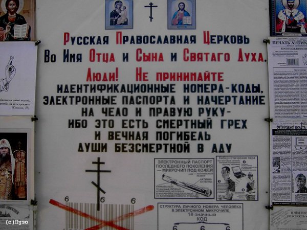 В Послании Священного Синода Украинской Православной Церкви Московского Патриархата от 29 декабря 2003 года справедливо отмечено: «Царство антихриста не состоится без соответствующей технической базы, с помощью которой он захочет добиться своих целей. <...> Нынешний процесс кодификации гражданского населения непосредственно касается политической и хозяйственной деятельности граждан. Он внедряется в формах, которые имеют типологическое сходство с ограничениями апокалиптических времен. <...> В религиозном контексте указанные действия власти приобретают апокалиптическую составляющую, что может расцениваться как сознательное или невольное содействие созданию технической базы, способствующей воцарению антихриста...»